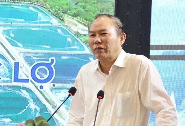 Thứ trưởng Bộ Nông nghiệp và Môi trường Phùng Đức Tiến đưa ra những giải pháp phát triển sản xuất tôm giống nước lợ trong thời gian tới. Ảnh: Phương Chi.
