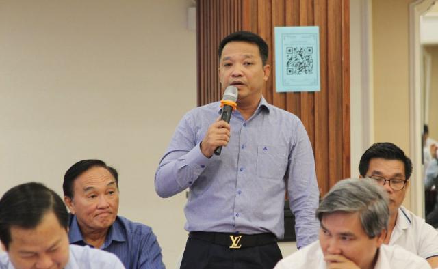 Ông Lê Văn Quê, Chủ tịch Hiệp hội Giống thủy sản Ninh Thuận - Khánh Hòa chia sẻ tại hội nghị. Ảnh: Phương Chi.